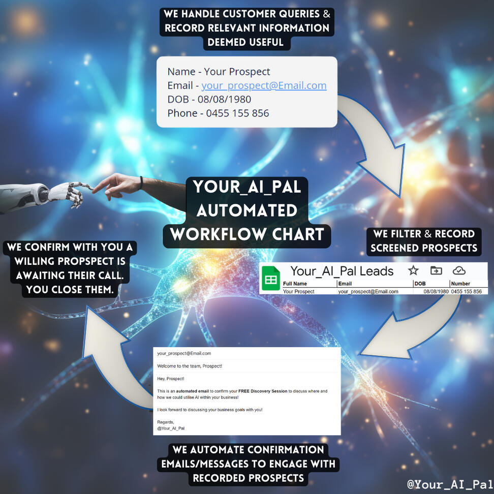 Here at Your_AI_Pal, we prioritise your businesses future growth and on-going stability.As the name suggests - the aim of your discovery session is straight forward and follows a simple 3 step process;